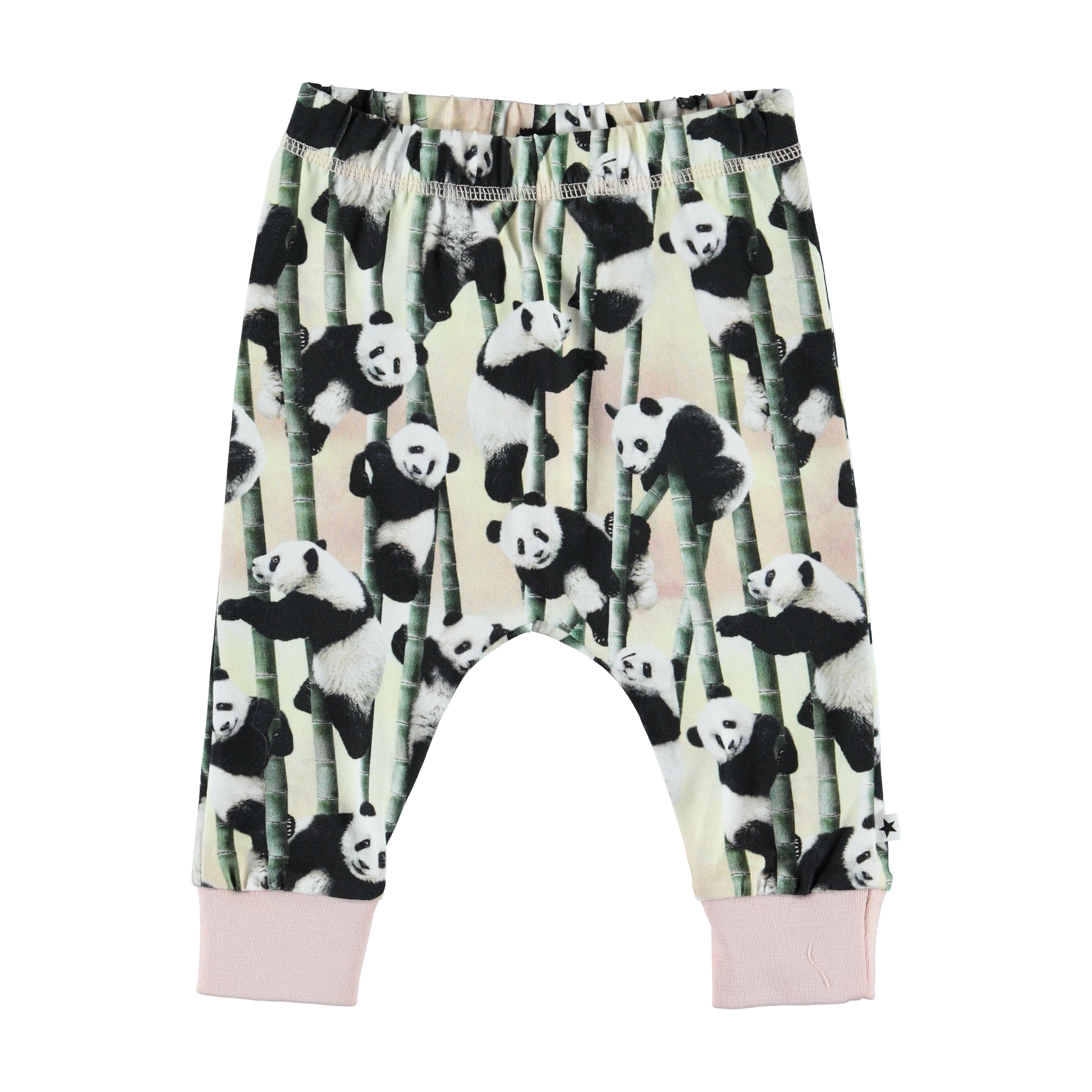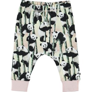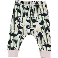 Simone är ett par rymliga baby byxor med tryck av pandabjörnar och deras favoritmat bambus. Simone har resår i midjan och ribb vid benslut, som ger en skön passform.