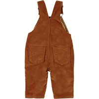 Sky är ett par bruna babybyxor i velour. Byxorna har justerbara hängslen, knappar på sidan och mellan benen.