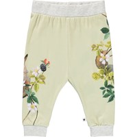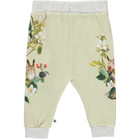 Susanne är ett par rymliga ljusgröna babybyxor med ekorre, bär och blommor på sidorna av benen. Byxorna har gummiband i midjan och ribbkant vid benslut, vilket säkrar en skön passform.