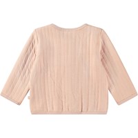 Denna rosa quiltade jacka är tillverkad av den mjukaste bomullen och är perfekt för de små. Jackan har långa ärmar och knäpps med pärlknappar framtill.