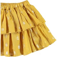 Bianca är en gul babykjol med guldiga prickar. Kjolen har en elastisk midja och en tvådelad kjol.