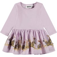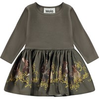 Brun långärmad babtklänning i 100% ekologisk bomull. Överdeleen är i ribbjersey medan kjolen är i poplin med kaniner på.