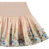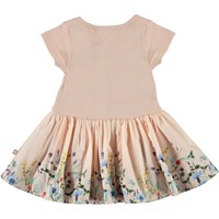 Carin er en lyserød to-delt babykjole med korte ærmer og peplum skørt med vilde blomster.