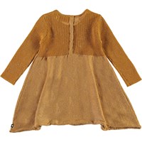 Cass är en guldig stickad babyklänning med ribbad överdel. Klänningen har knappstängning baktill.