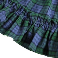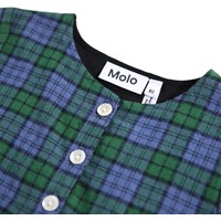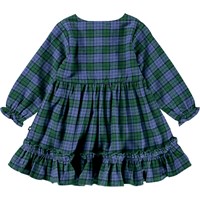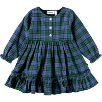 Klänning i rutigt mönster för de små i ekologisk bomull. Klänningen har en rund halsringning med tre knappar framtill och långa ärmar med en liten volangkant. Kjolen på klänningen har en fin volangkant längst ner och eleganta veck, vilket ger den en fyllig look. Klänningen är lätt att ta på och har utrymme för att leka och röra sig.