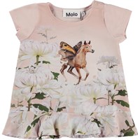 Coletta är en rosa babyklänning med korta ärmar i 100% bomullsjersey. Klänningen har en volangkjol och tryckknappar vid ena axeln, vilket gör den enkel att ta av och på. Klänningen är med ett föl med fjärilsvingar som flyger runt mellan stora vita blommor.