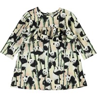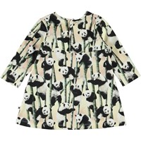 Coletta är en baby klänning med all-over tryck av pandabjörnar och deras favoritmat bambus. Klänningen har långa ärmar, volanger över bröstet, samt tryckknapp i nacken.