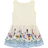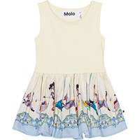 Cremefärgad ekologisk klänning utan ärmar till baby. Klänningens överdel är i stretch som säkrar en bra rörelseförmåga. Klänningen har rundad kjol med krusellmönster.
