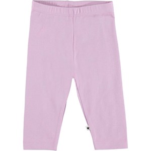 Klassiska ljuslila babyleggings. Gummibandet i midjan och det mjuka materialet säkrar en bra passform.