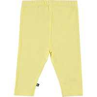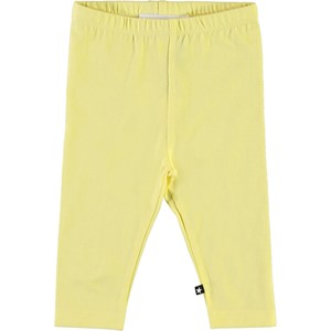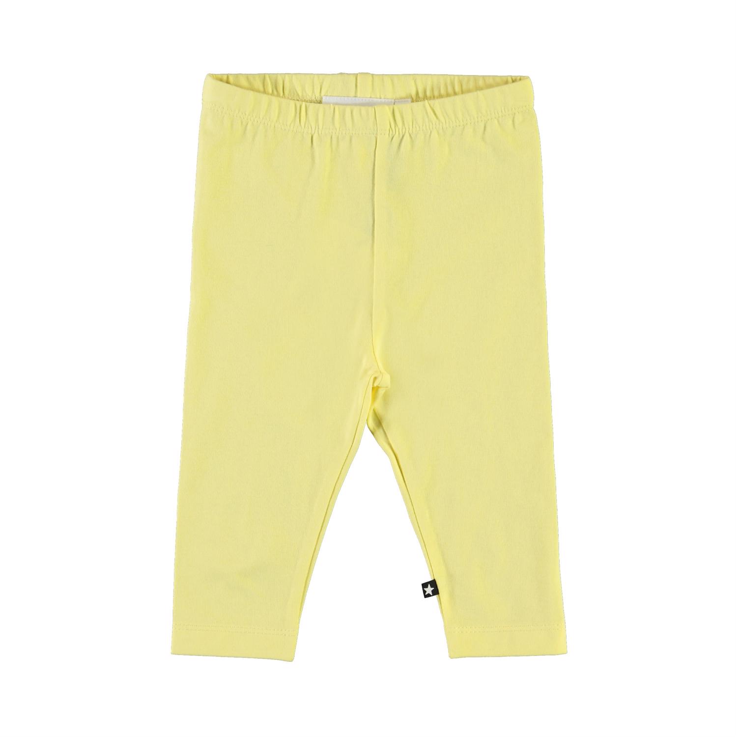 Klassiska, gula babyleggings. Den elastiska midjan och det mjuka materialet säkerställer en bra passform.Certifierad av Ecocert Greenlife, certifiering nr. 197496.