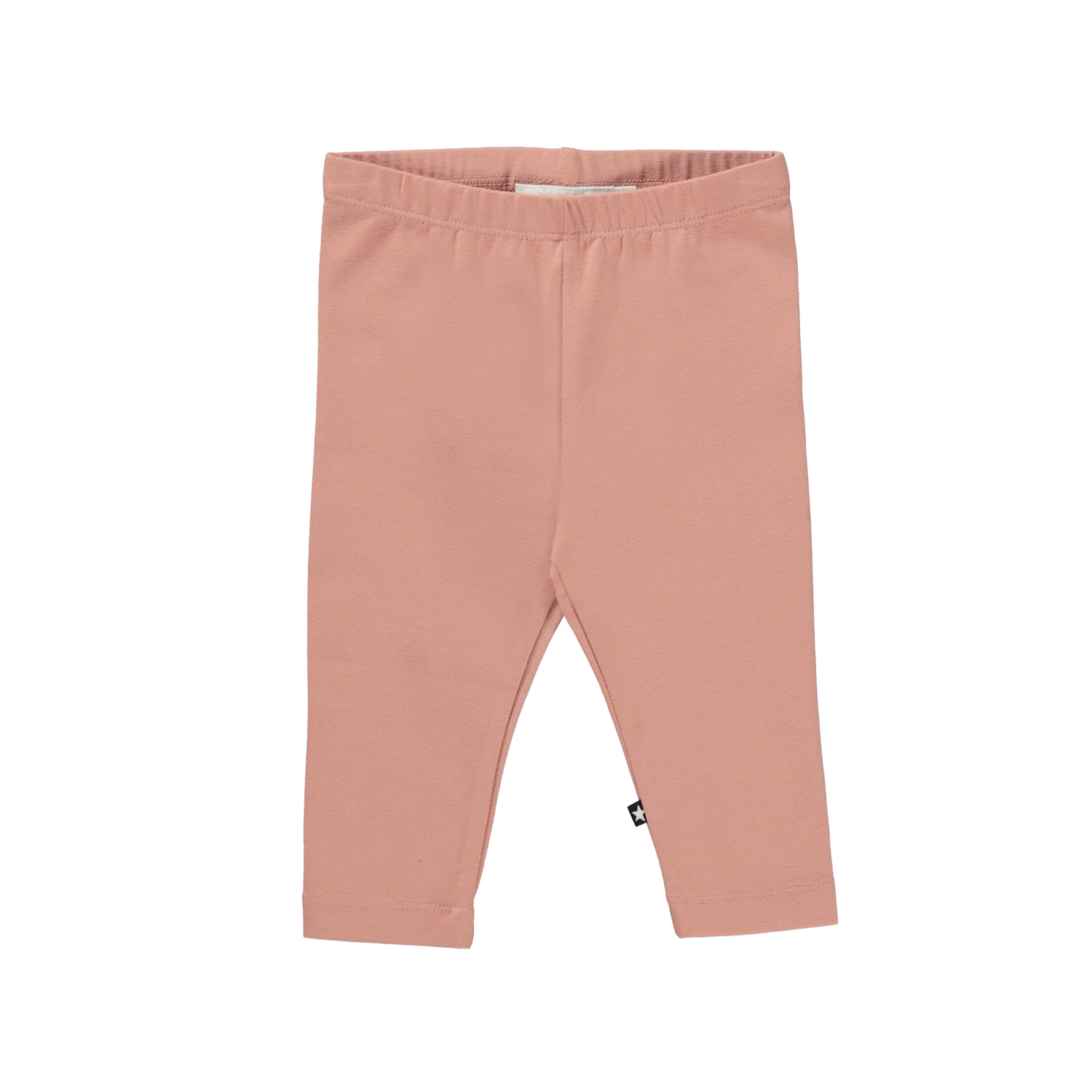 Klassiska rosa babyleggings. Gummiband i midjan och det mjuka materialet säkrar en bra passform.