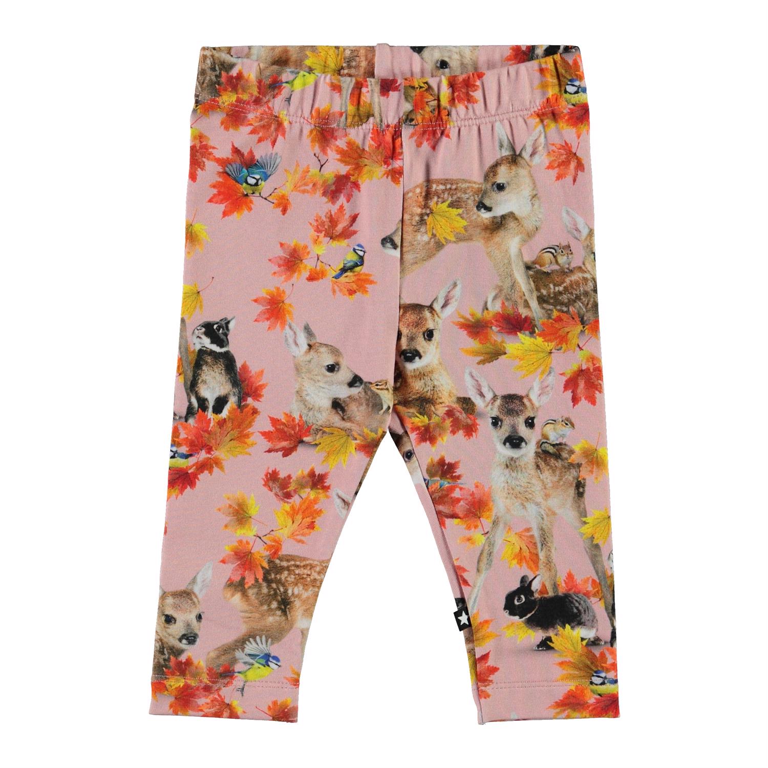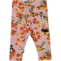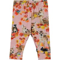 Stefanie är ett par rosa babyleggings med ett tryck av djur. Den elastiska midjan och det mjuka materialet ger en bra passform.