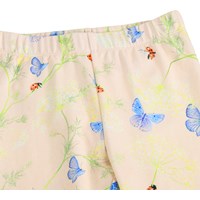 Rosa leggings för de små i ekologisk bomull med ett fjärilsmönster. De har en elastisk midja och en mjuk, bekväm passform.