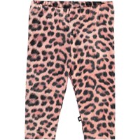 Klassiska babyleggings med rosa leopardmönster. Gummibandet i midjan och det mjuka materialet säkrar en bra passform.