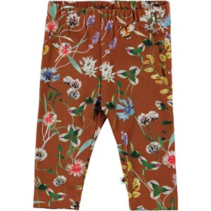 Stefanie är ett par bruna babyleggings med ett tryck av vilda blommor. Den elastiska midjan och det mjuka materialet ger en bra passform.