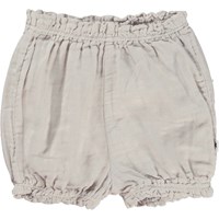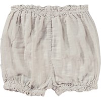 Siff är ett par ljusgrå baby blöjbyxor i 100% bomullsmuslin. Byxorna har gummiband i midjan och vid låren, så de sitter tätt runt blöjan.