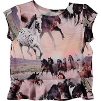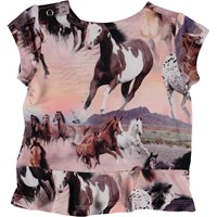 Ebba är en baby t-shirt i Molos "Wild Horses" tryck, som ger färg till t-shirten. Ebba har helt korta ärmar och en liten peplum volang.