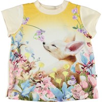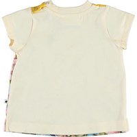 Elly är en ljusgul baby-t-shirt med en rävunge och fina blommor.