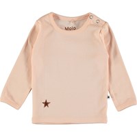 Puderfärgad basis blus till baby med en liten tryckt stjärna nedtill. Tryckknappar i halsen gör blusen lätt att få av och på.