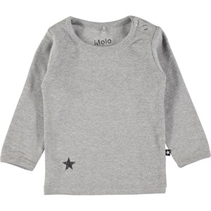 Grå basis blus till baby med en liten tryckt stjärna nedtill. Tryckknappar i halsen gör blusen lätt att få av och på.