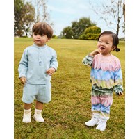 Mjuk sweatshirt för de små i ekologisk bomull. Sweatshirten har raglanärmar, ribbade kanter och en rund halsringning med knäppning bakom axeln, vilket gör den enkel att ta på och av. Denna sweatshirt är flerfärgad med löv och fjädrar. Matcha med matchande byxor för en komplett outfit.