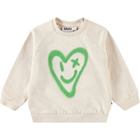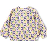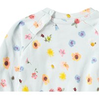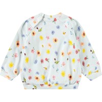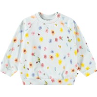Mjuk sweatshirt för de små i ekologisk bomull. Sweatshirten har raglanärmar, ribbade kanter och en rund halsringning med knäppning bakom axeln, vilket gör den enkel att ta på och av. Denna sweatshirt är ljusblå med blommigt mönster. Matcha med matchande byxor för en komplett outfit.