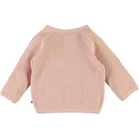 Dolly är en rosa babytröja i ekologisk bomull. Tröjan har raglanärmar och knappar på framsidan. Kombinera tröjan med matchande byxor.
