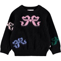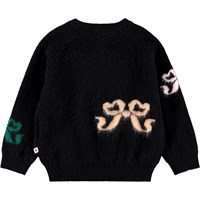 Stickad ulltröja för de små. Tröjan är svart med flerfärgade vävda rosetter fram och bak. Tröjan har ribbade kanter runt halsen, ärmar och midja. Kombinera den med matchande byxor för en komplett uppsättning.