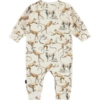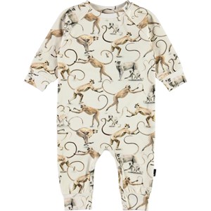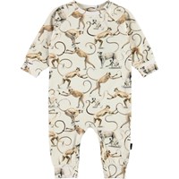 Fairfax är en vit babydräkt med långa ärmar och ben, här med apor som håller varandra i svansarna. Kan du hitta hjärtat? Drökten har raglanärmar och tryckknappar vid halsen och benen gör den enkel att ta av och på.