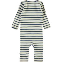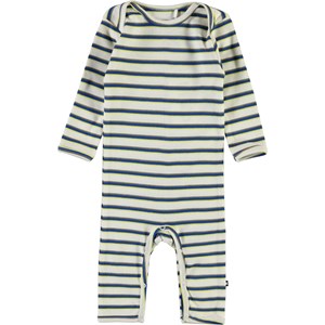 Faso är en ribbad randig babybody med långa ben och ärmar. Tryckknappar i nacken och benen gör den enkel att ta på och av.