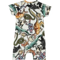 Felton är en baby body med all-over tryck av Australiens vilda djur. Bodyen har korta ärmar och ben. Tryckknappar vid halsen och i grenen, gör bodyen lätt att ta av och på.