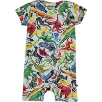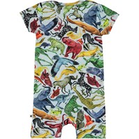 Felton är en ljusblå babybody med ett tryck av olika färgglada djur. Bodyn har korta ärmar och ben. Tryckknappar i halsen och mellan benen gör den enkel att ta av och på.