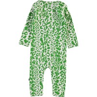 Fenez är en babybody med långa ben och ärmar och ett grönt leopardtryck. Tryckknappar i nacken och benen gör den enkel att ta på och av.