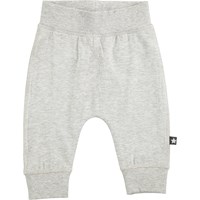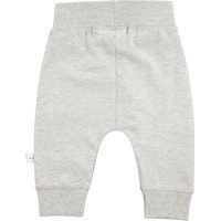 Rymliga grå byxor med sömlös framsida, bred resårkant i midja och benslut samt dekorativa stickningar fram, som ger byxorna ett sweat look.