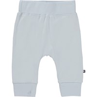 Sammy är ett par isblå babybyxor i 100% ekologisk bomullsjersey. Byxorna har en bred ribbad kant i midjan och vid benslut som ger en skön passform.