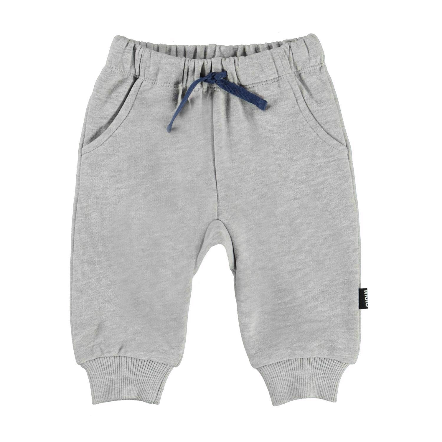 Simme är ett par mjuka och sköna ljusgrå babybyxor i en tjock tygkvalitet. Byxorna har knytband i midjan, fickor i sidorna och en enkel bakficka.
