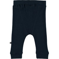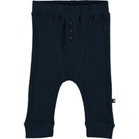Mjuka, randiga baby byxor i ribb med pyntknappar framtill samt kant i midja och vid benslut.