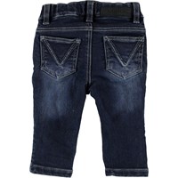 Sonny är baby jeans i mörkblå med vita stickningar.