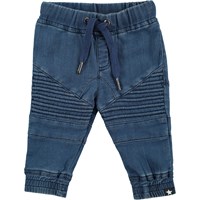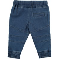 Tuffa, blå jeans i en tvättad look med snygga ribbdekorationer och reglerbar resår i midjan med svart knytband.