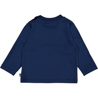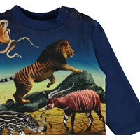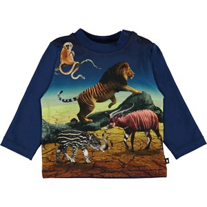 Enovan är en blå babytröja med trycket 'Wild Future' framtill, som är framtidens vilda djur. Kan du se vilka djur som är deras förfäder? Enovan har en knapp på ena axeln. Tröjan har mörkblå ärmar samt baksida.