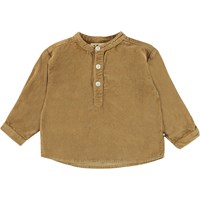 Enoz är en babyskjorta i manchester. Skjortan har knappar i kragen och där finn byxor som passar perfekt till skjortan.