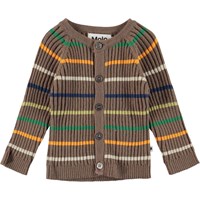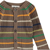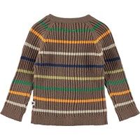Bandixär en fin kofta i brun med multifärgade ränder och knappar. Kombinera med matchande byxor. Koftan är tillverkad i en mjuk ull/bomullskvalitet.