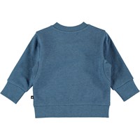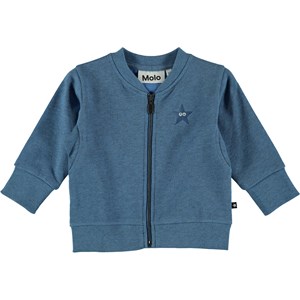 Derek är en blå baby sweatshirt med dragkedja framtill. Derek har en mjuk, borstad insida, samt ribb vid hals, ärmslut och nederkant och broderad stjärna på bröstet