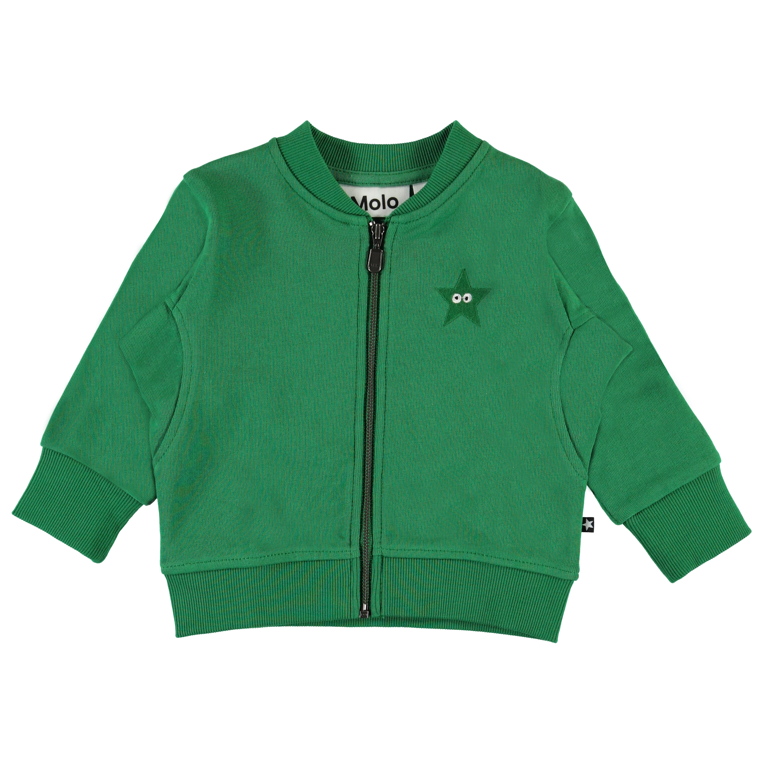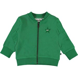 Derek är en grön baby sweatshirt med dragkedja framtill. Derek har en mjuk, borstad insida, samt ribb vid hals, ärmslut och nederkant och broderad stjärna på bröstet.