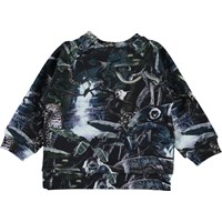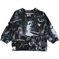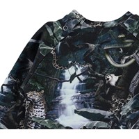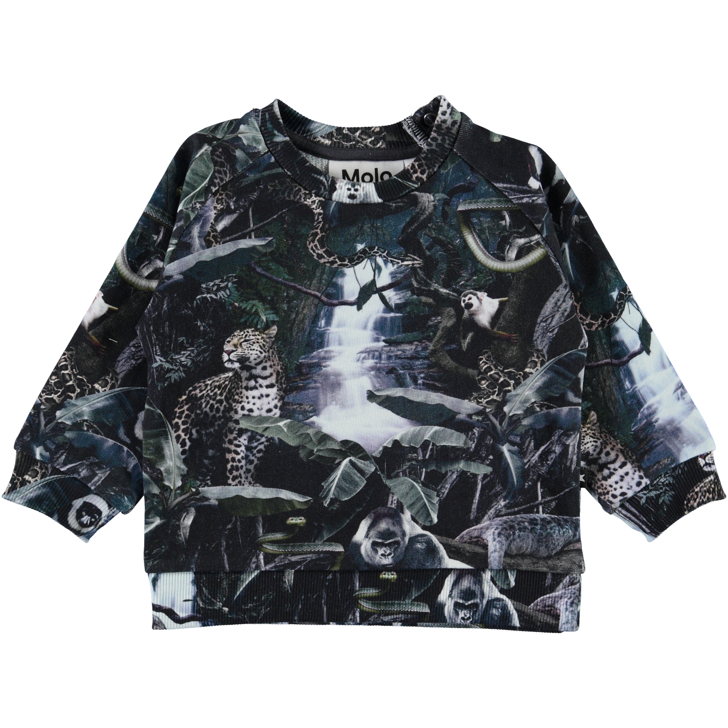 Disco är en babytröja med långa ärmar och tryck av djungeldjur i månskenet. Tröjan stängs med knappar i nacken.