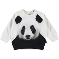 Disco är en vit baby sweatshirt med tryck fram av en panda. Sweatshirten har knappknäppning i nacken, som gör sweatshirten lätt att ta av och på.