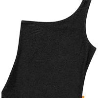 Svart baddräkt med ett axelband med textur och UV-skydd 50+. Baddräkten har en normal passform, asymmetrisk bred rem och är helt fodrad. Produkten är CE-märkt och testad enligt standarden EN-13758-1.