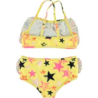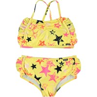 Nanda er en gul bikini med stjerne print. Bikinien har en lidt bredere facon, hvilket gør at den dækker lidt mere hud. Nanda har flæser i siderne på både top og bund, samt krydsede stropper på overdelen. Molo's badetøj har UV beskyttelse 50+. Produkten är CE-märkt och testad enligt standarden EN-13758-1.