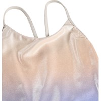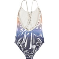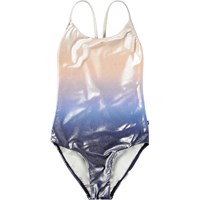 Baddräkt med en glansig yta i blå och krämfärgade nyanser, för aktiva barn i återvunnen polyester med UV-skydd 50+. Baddräkten har en normal passform, är helt fodrad och har tunna axelband som korsar på den djupa ryggen. I storlekarna 140-176 är axelbanden justerbara.