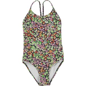 Nanna är en baddräkt i en sportig passform med smala axelband som korsar bak på ryggen. Här är Nanna med ett småblommigt mönster i olika färger. Molo´s badkläder har UV skydd 50+. Produkten är CE-märkt och testad enligt standarden EN-13758-1.